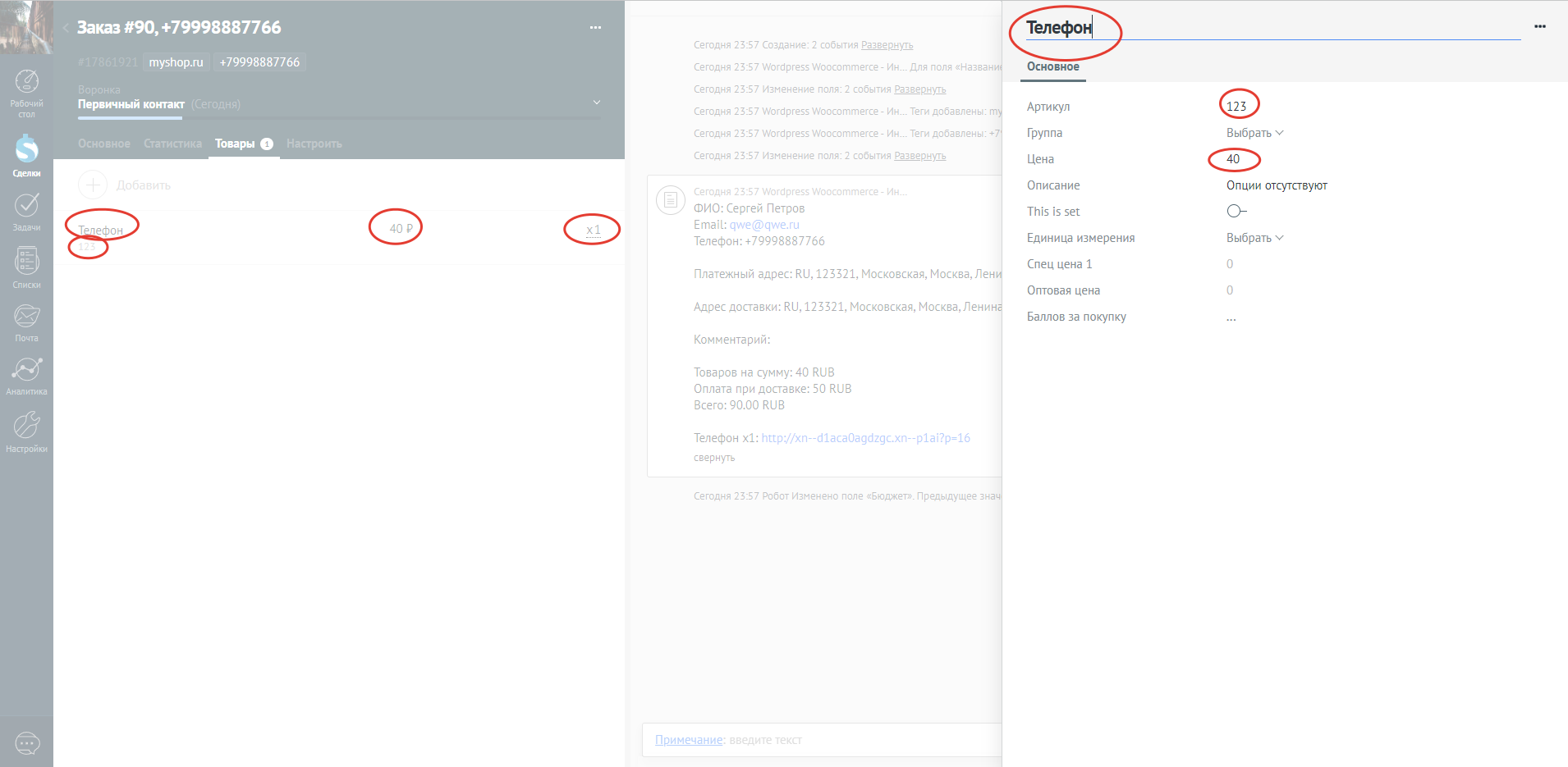 - Настройка произвольного названия сделки с использованием данных из заказа.
